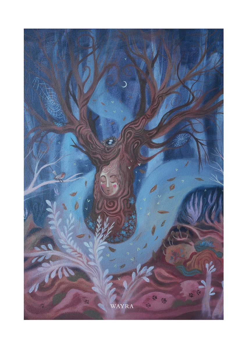 Meine Kunst ist inspiriert von Natur, meinen Reisen, Träumen und Weisheiten. Meine Bilder sind symbolreich und erzählen immer eine Geschichte. Wenn du mehr erfahren möchtest über die Bedeutung meiner Kunst, schau‘ dir gern meine Videos bei Youtube an. Darin erzähle ich viel über Entstehungsprozesse und Bedeutung meiner Kunst.